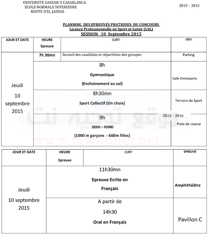 Ecole Normale Supérieure ENS Casa Résultats de la préselection Septembre 2015 Licence Professionnelle et Licence métiers de l’Enseig...